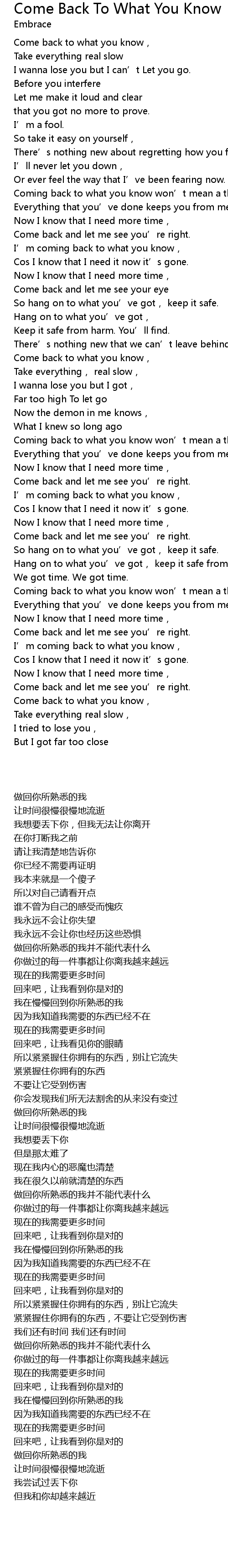| [03:15.76] | Coming back to what you know won' t mean a thing. |