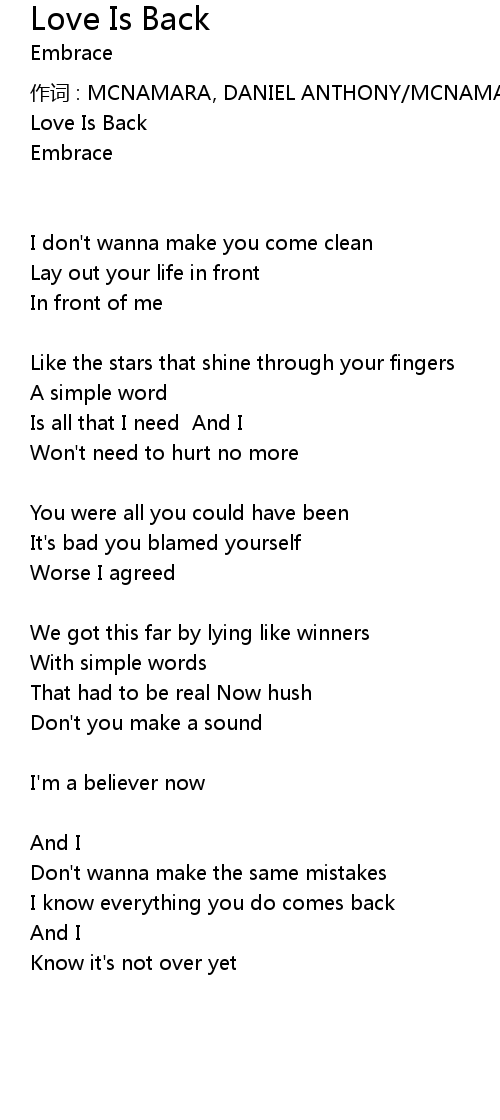 | 作词 : MCNAMARA, DANIEL ANTHONY/MCNAMARA, RICHARD | |