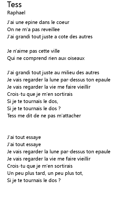 Tess me dit de ne pas m'attacher |