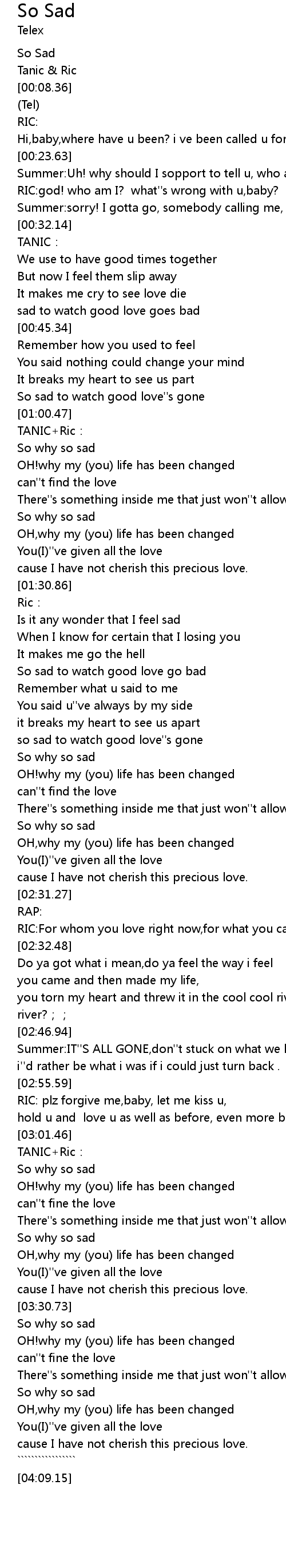 | [00:03.72] | So Sad |