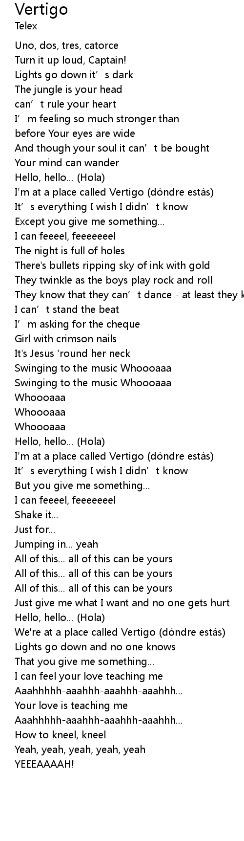 | We're at a place called Vertigo (dóndre estás) | |