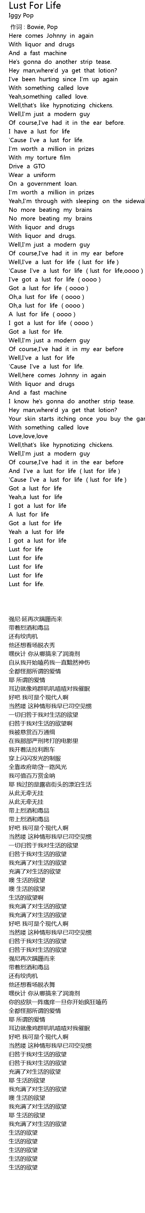 | [02:55.86] | ' Cause I' ve a lust for life lust for life, oooo |