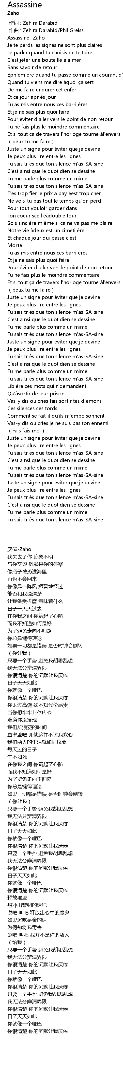 | [00:01.31] | Assassine -Zaho |