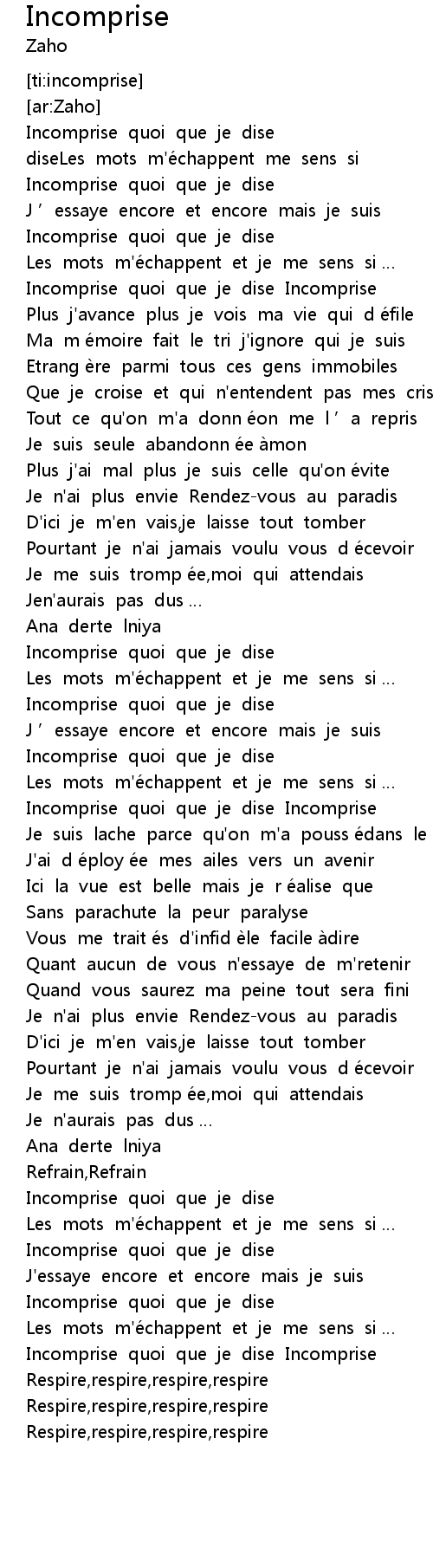 | [02:41.17] | Incomprise quoi que je dise Incomprise |