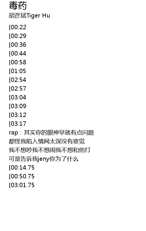 | [01:42] | rap: qí shí nǐ de yǎn shén zǎo jiù yǒu diǎn wèn tí |