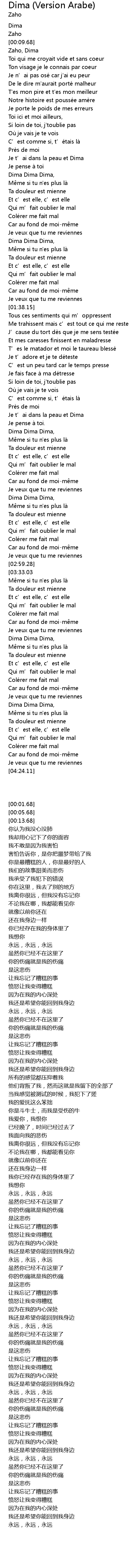 | [00:13.68] | Zaho, Dima |