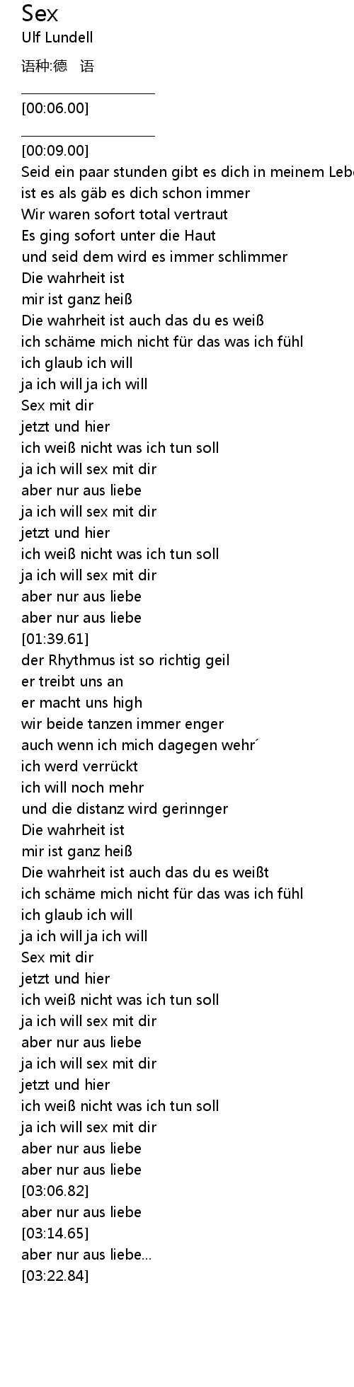 | [00:17.25] | Seid ein paar stunden gibt es dich in meinem Leben doch für mich |