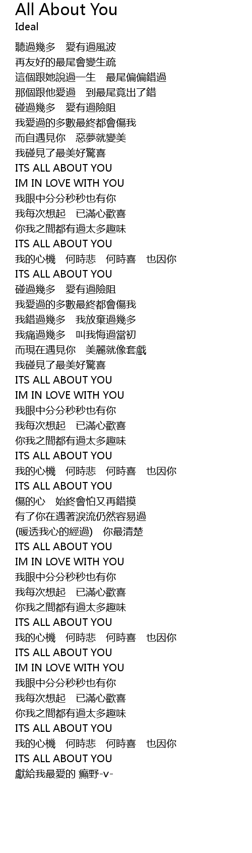 | [01:34.00] | ITS ALL ABOUT YOU |