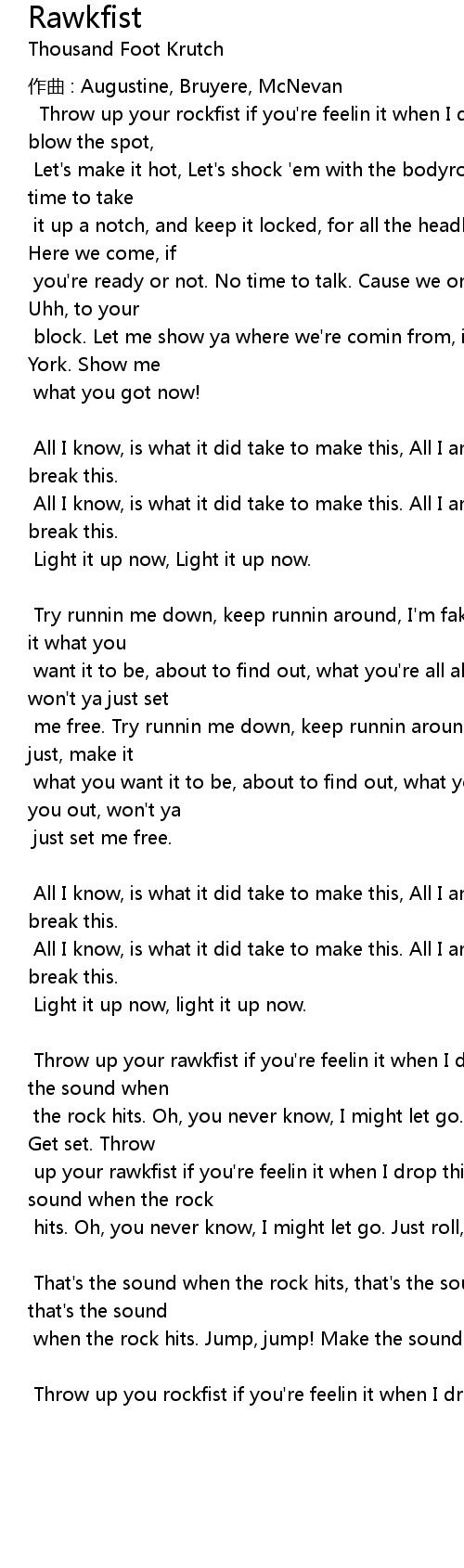 | Throw up your rawkfist if you're feelin it when I drop this. Uhh, Uhh, That's the sound when | |