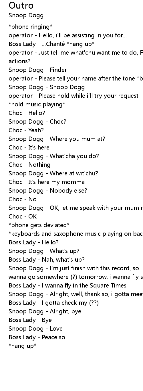 | Snoop Dogg - Alright, well, thank so, i gotta meet you in the airport | |