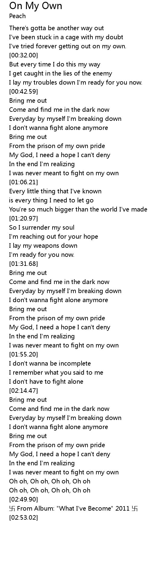 | [00:46.92] | Everyday by myself I'm breaking down |