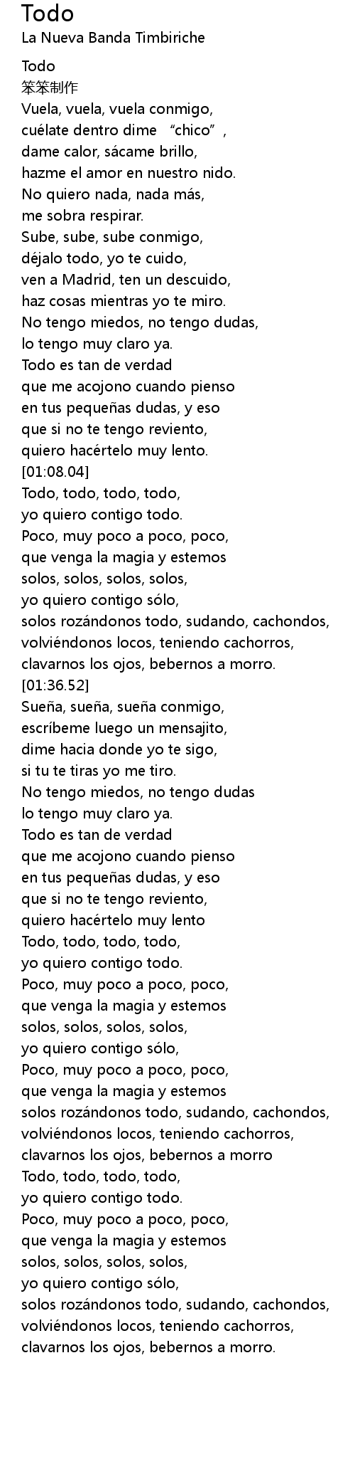 | [01:26.43] | solos rozá ndonos todo, sudando, cachondos, |