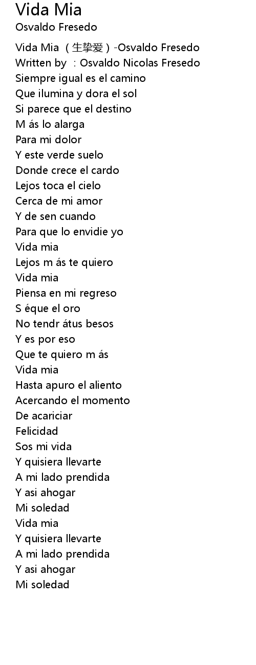 | [00:00.00] | Vida Mia (生挚爱)-Osvaldo Fresedo |