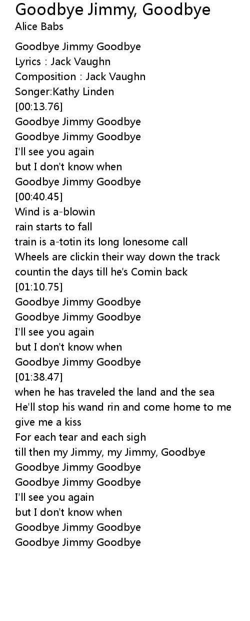 | [02:29.65] | Goodbye Jimmy Goodbye |