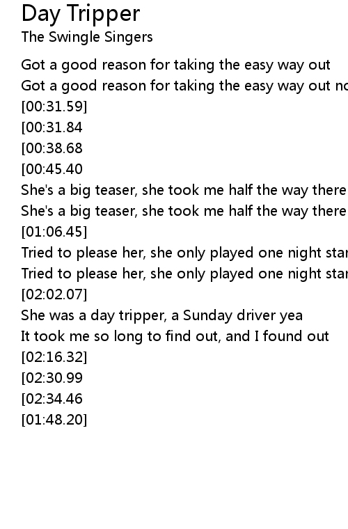 Day tripper yea |