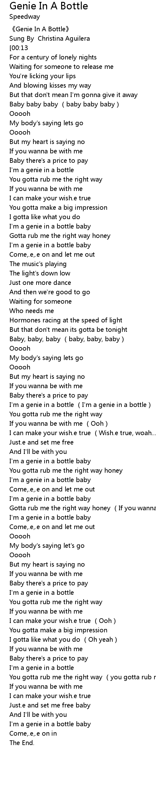| [01:58] | I'm a genie in a bottle (I'm a genie in a bottle) |