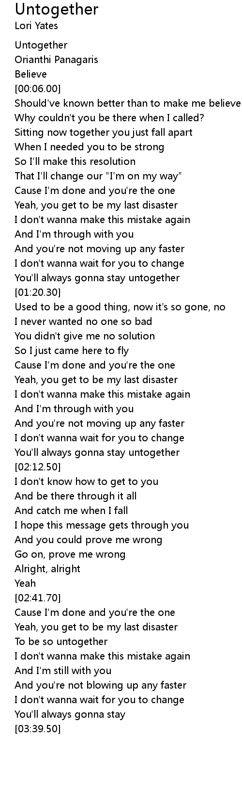 You'll always gonna stay untogether |