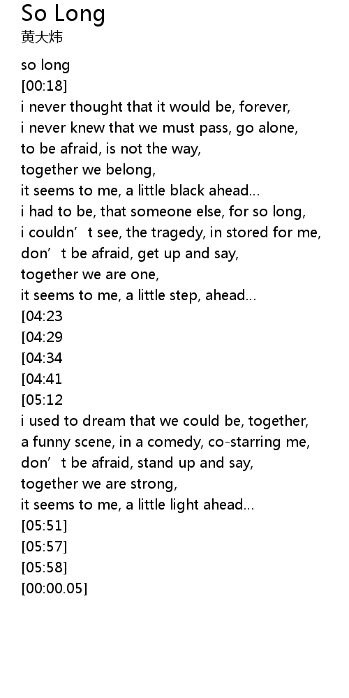 | 歌曲 | So Long |