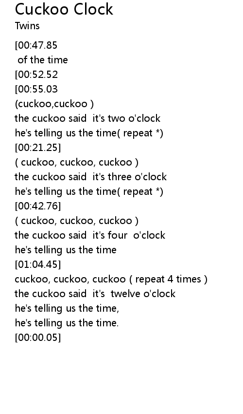cuckoo, cuckoo, cuckoo ( repeat 4 times ) |