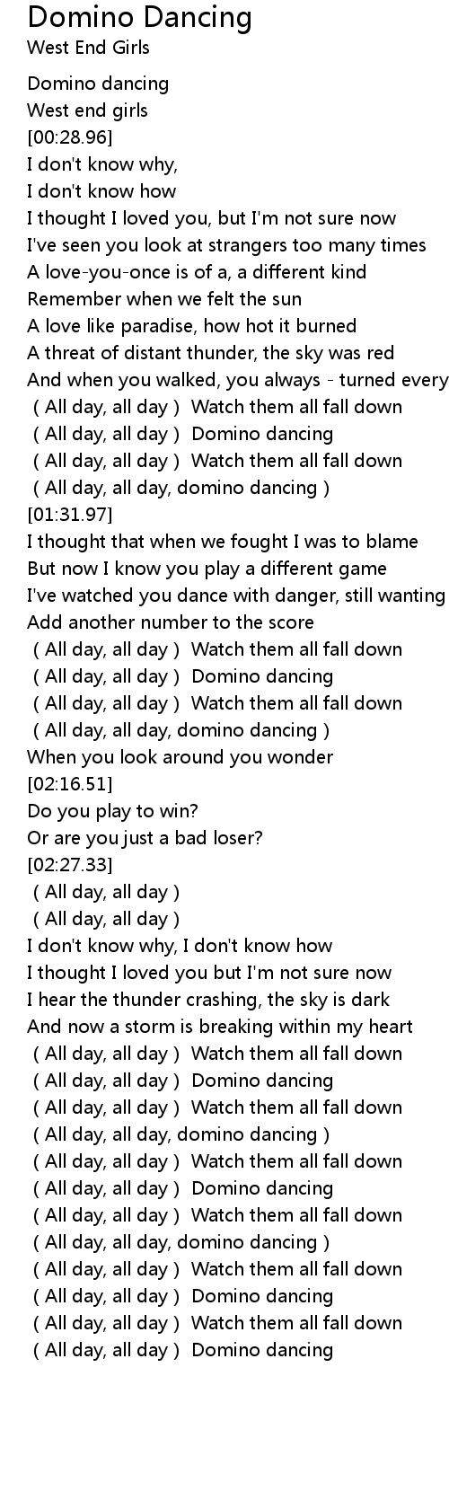 | [03:31.54] | All day, all day Domino dancing |