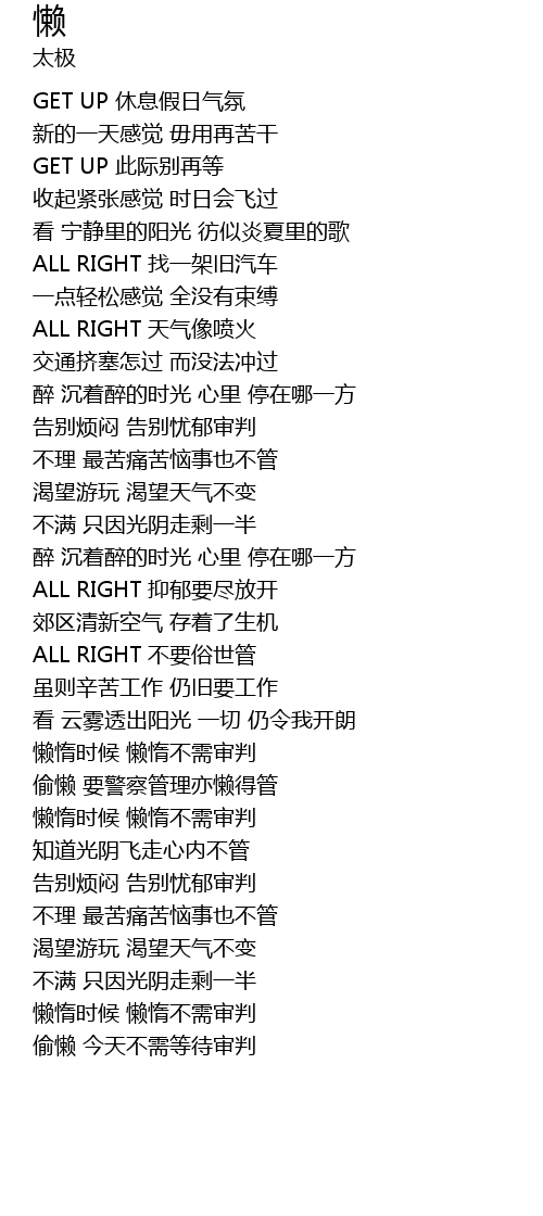 | [00:23.50] | GET UP 休息假日气氛 |