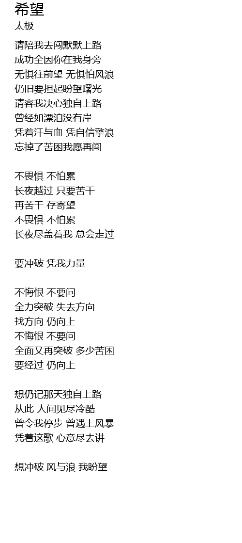 希望 歌词