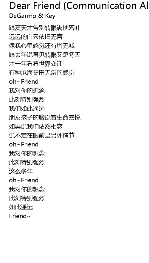 | 歌曲 | Dear Friend (Communication Album Version) |