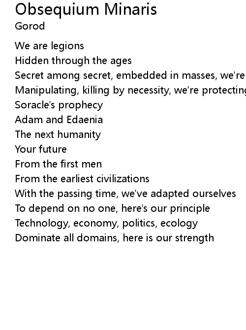 | 歌曲 | Obsequium Minaris |