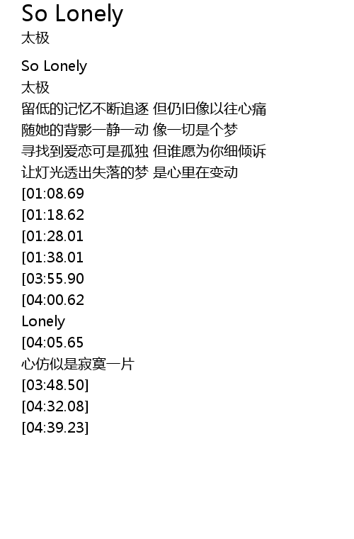 | [04:15.25][03:55.90][03:31.66][03:11.98][02:08.94][01:49.67] | So Lonely So Lonely |