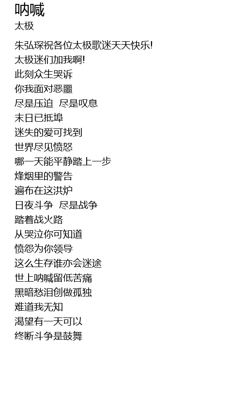 | [00:-0.50] | 朱弘琛祝各位太极歌迷天天快乐! |