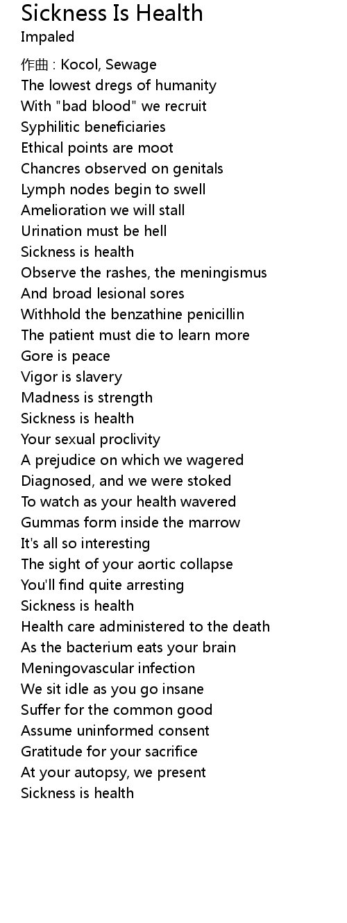 | 歌曲 | Sickness Is Health |