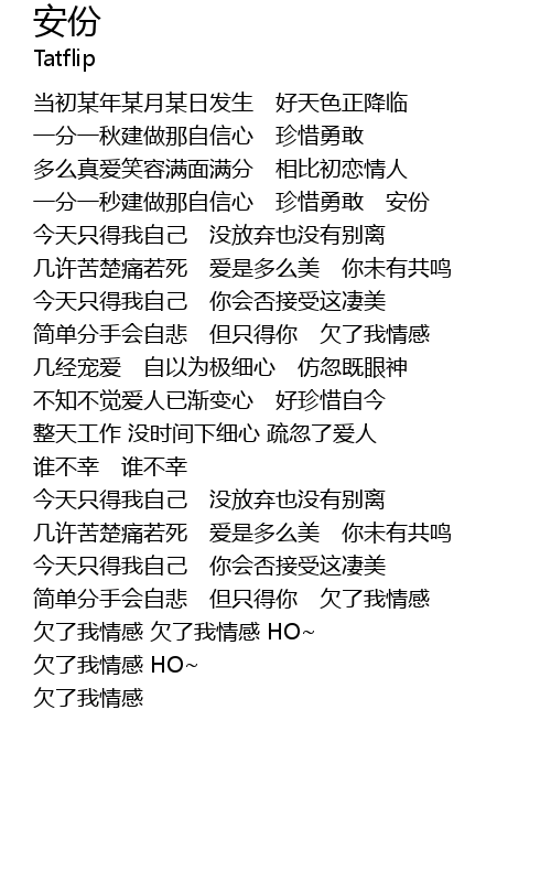 | [03:21.54] | 欠了我情感 欠了我情感 HO~ |