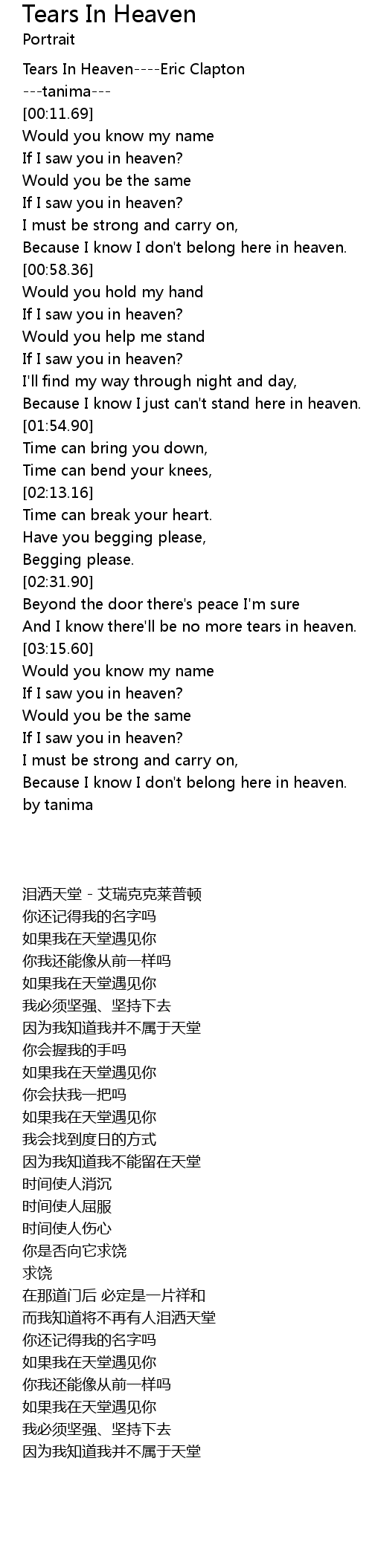 Tears In Heaven----Eric Clapton |