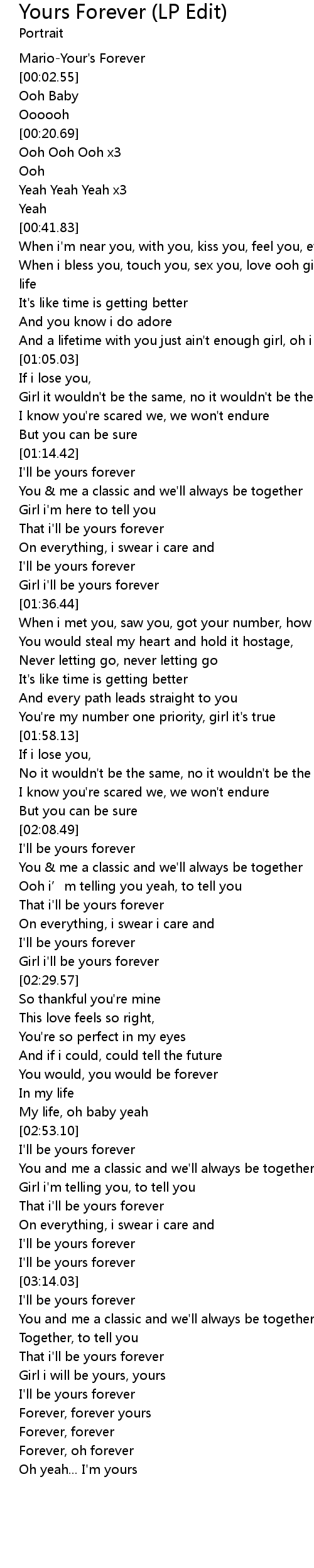 | [03:34.94] | Forever, forever yours |