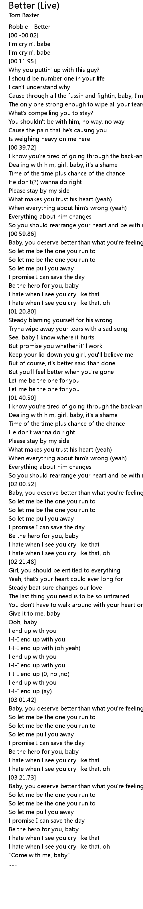 | [03:22.17] | Baby, you deserve better than what you're feeling |