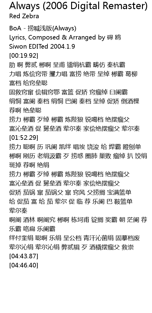| [00:00.88] | BoA - 捞喊浅版(Always) |