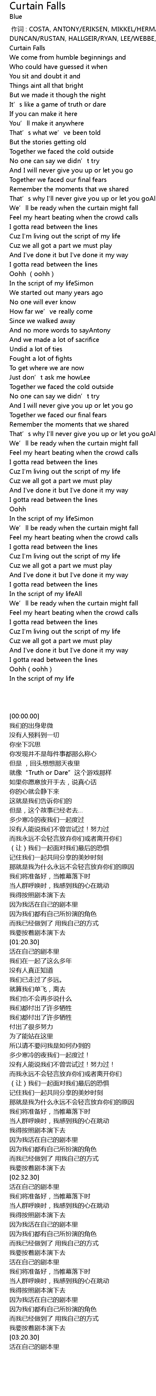 | [00:00.00] | Curtain Falls |