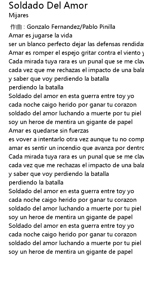 | [00:55.23] | soldado del amor luchando a muerte por tu piel |