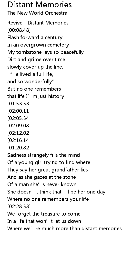 | [00:01.12] | Revive Distant Memories |