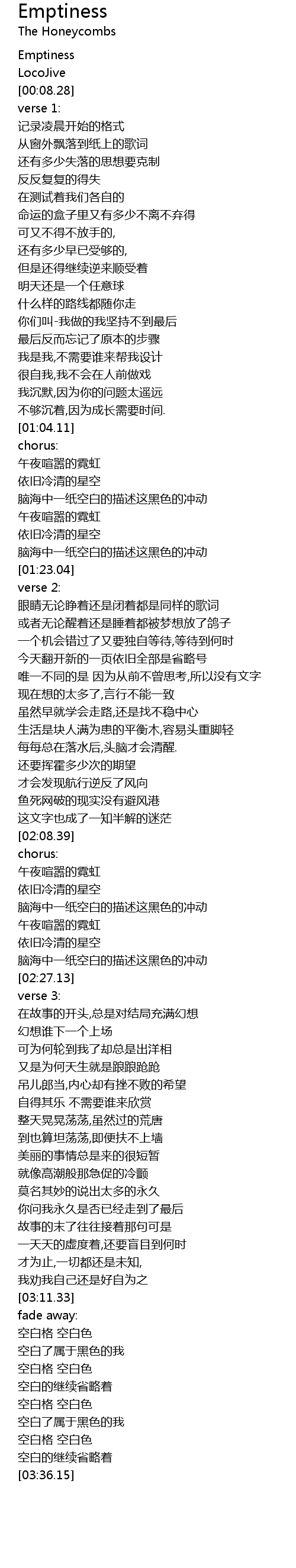 | [00:00.00] | Emptiness |