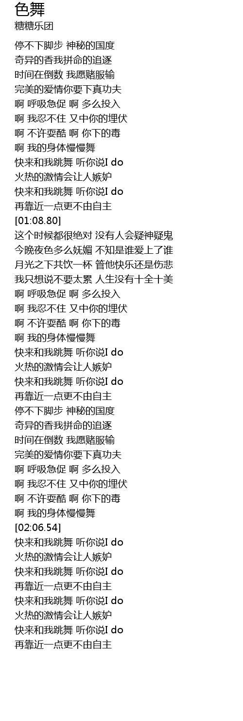 | [00:57.84] | kuai lai he wo tiao wu ting ni shuo I do |