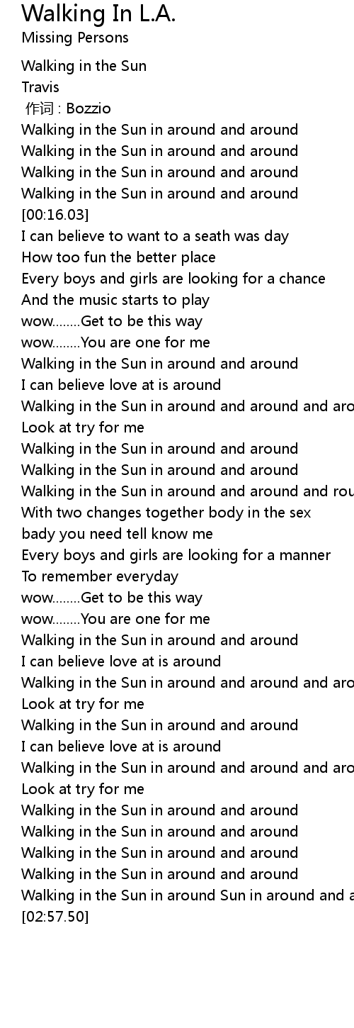 | [02:53.22] | Walking in the Sun in around Sun in around and around and around |