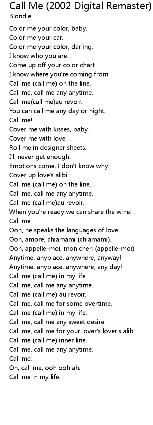 Ooh, appelle-moi, mon cheri (appelle-moi). |