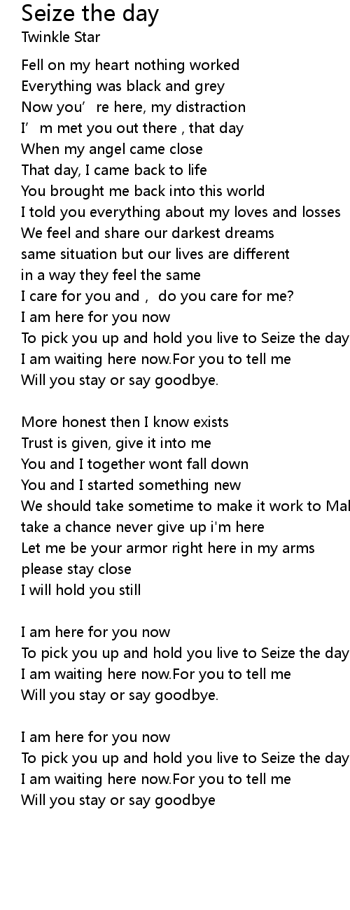 | To pick you up and hold you live to Seize the day | |