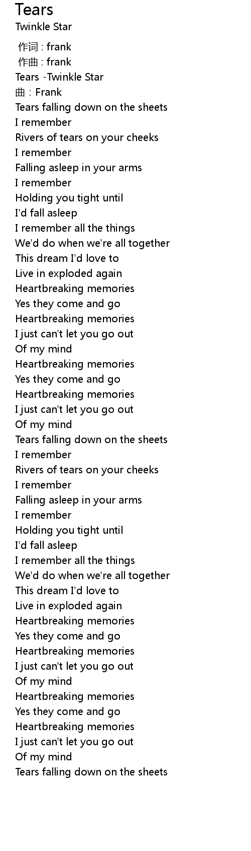 | [00:01.154] | Tears Twinkle Star |