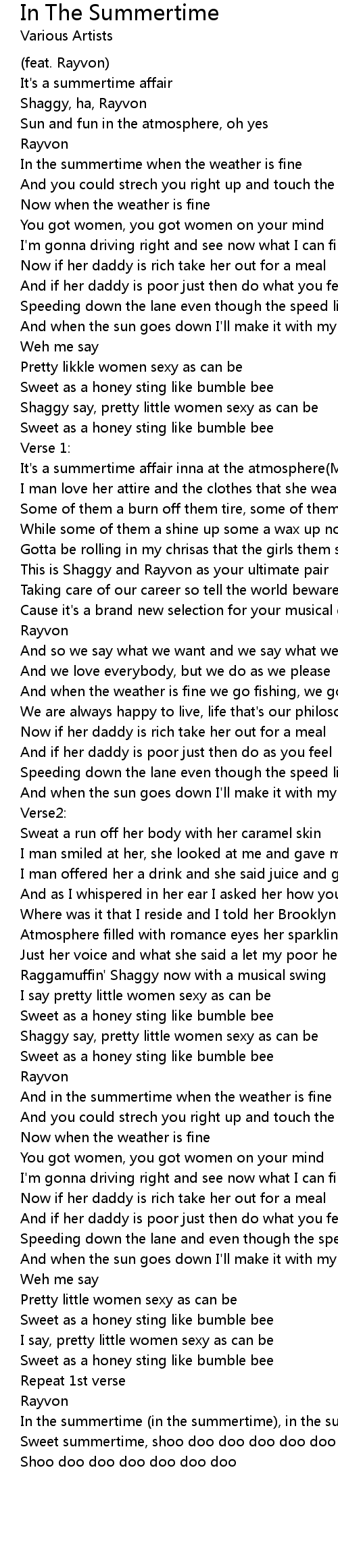 Sweet summertime, shoo doo doo doo doo doo doo doo doo doo |