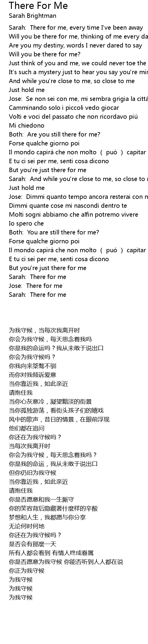 | [00:06.820] | Sarah: There for me, every time I′ve been away |
