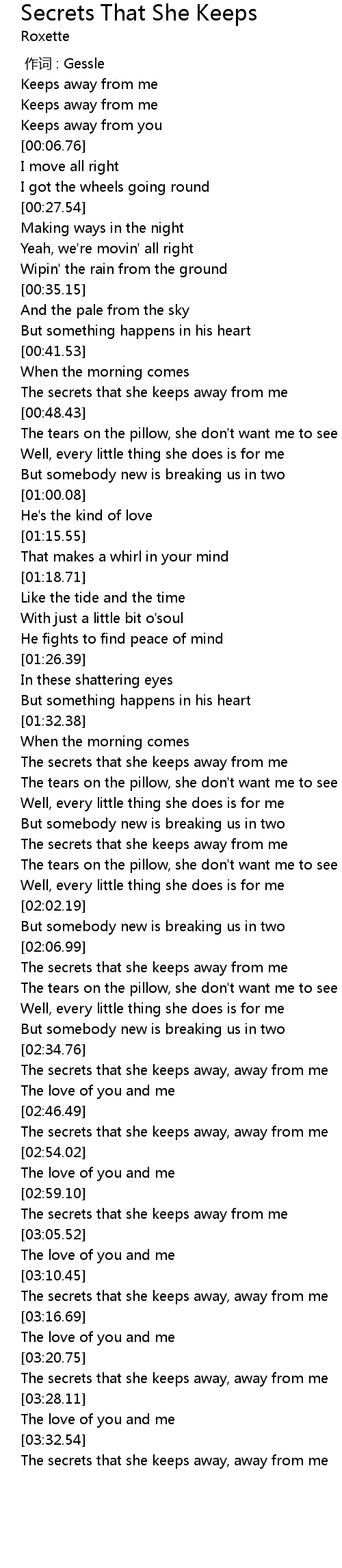 | [02:36.88] | The secrets that she keeps away, away from me |