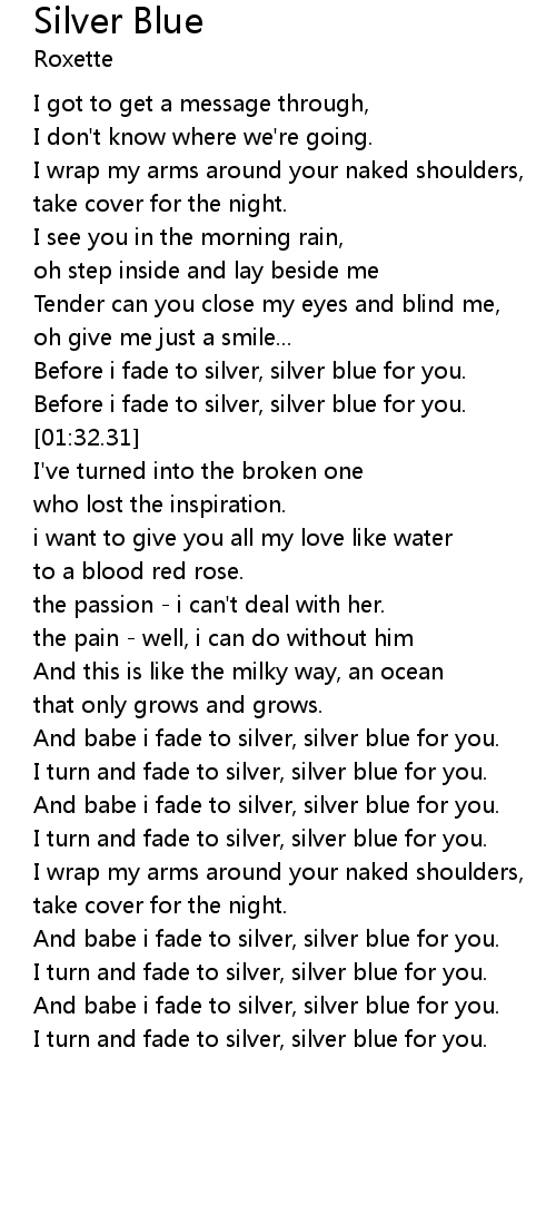 | [01:16.31] | Before i fade to silver, silver blue for you. |