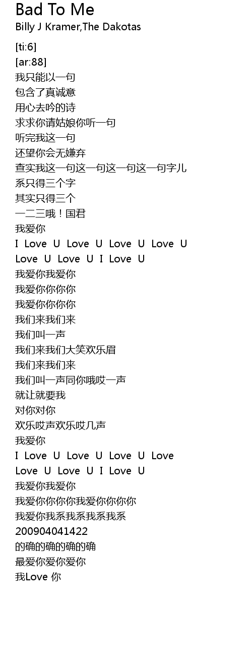 | [01:15.883] | wǒ ài nǐ nǐ nǐ nǐ wǒ ài nǐ nǐ nǐ nǐ |